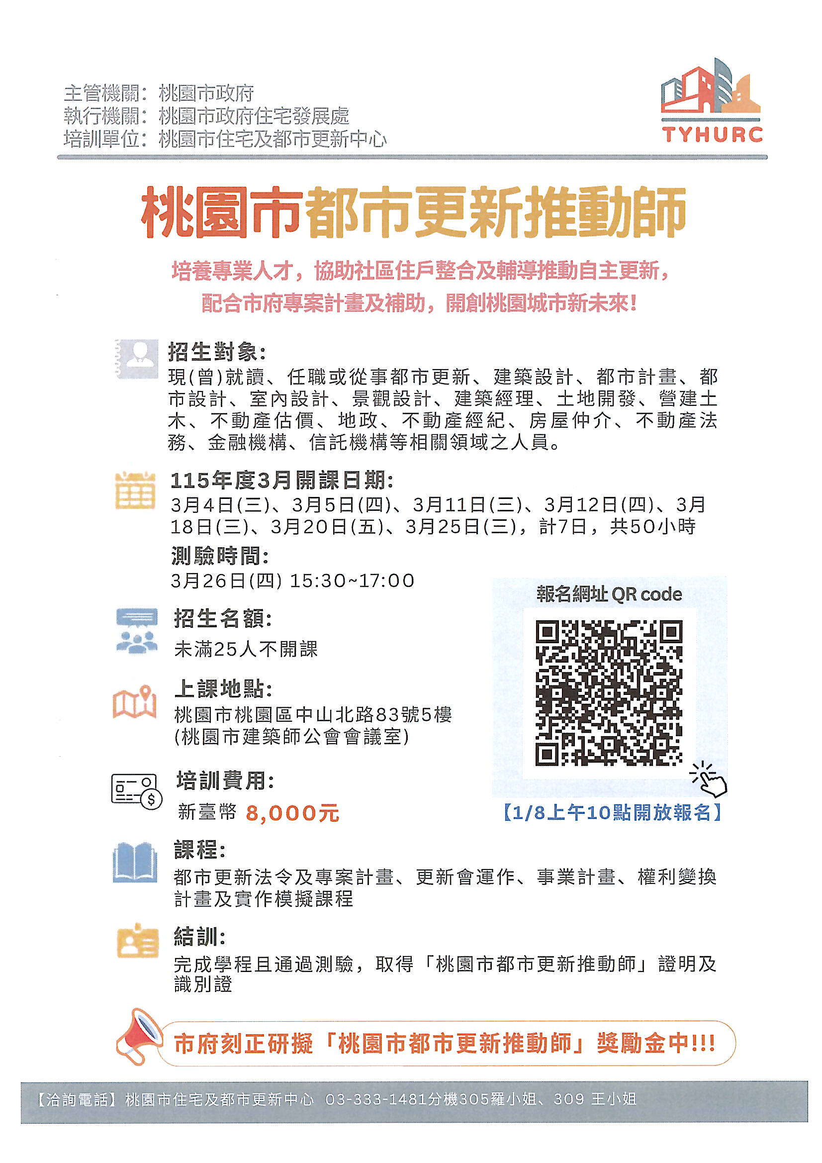 <桃園市住宅及都市更新中心>桃園市都市更新推動師培訓課程115年第2期招生簡章,詳內文及附件資料